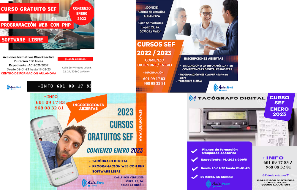 Desde tu academia de formación de La Unión ya estamos inmersos en programar nuevos proyectos y objetivos para 2023. Hemos pensado que la mejor manera es la formación laborar en diferentes sectores. Nos gusta ayudar y buscamos cursos SEF con alto porcentaje de futuro profesional, como el de iniciación a la informática y en competencias digitales básicas, tacógrafo digital y programación WEB con PHP - Software Libre. Dentro de este artículo puedes los detalls de estos cursos.