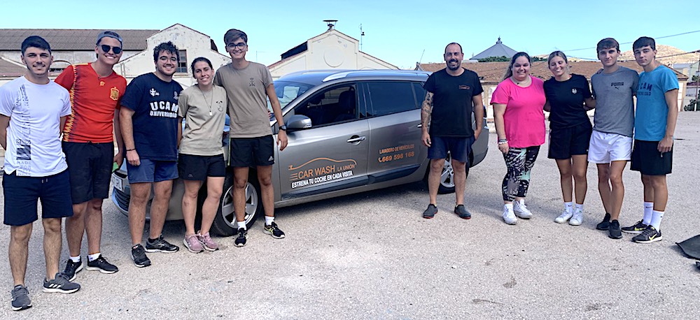 El gerente del centro de lavado de La Unión visitó ayer a los ocho jóvenes que están recabando fondos para viajar al encuentro mundial de la juventud católica, que tendrá lugar en 2023, a quienes regaló pulverizadores, ambientadores y 25 litros de producto para limpieza exterior.