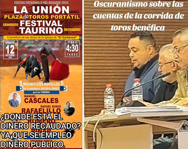 "¿Por qué el gobierno local no ha presentado cuentas sobre lo sacado de la recaudación después de tantos meses?, ¿han dado el dinero recaudado para el arreglo de la iglesia del Garbanzal?... Desde Defiende La Unión queremos explicaciones de porqué la concejal de Hacienda nos presenta un informe donde decía que no había facturas y ahora aparecen facturas, las cuales nos costó conseguirlas porque ella misma no firmaba esos documentos en intervención para no dárnosla, teniendo nosotros conocimiento de que existían esas facturas.