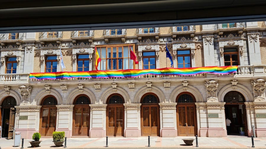 El Ayuntamiento de la Unión luce en los balcones de la casa consistorial la simbólica bandera arco iris y en la sede del PSOE están presentes las banderas de reivindicación LGTBI.