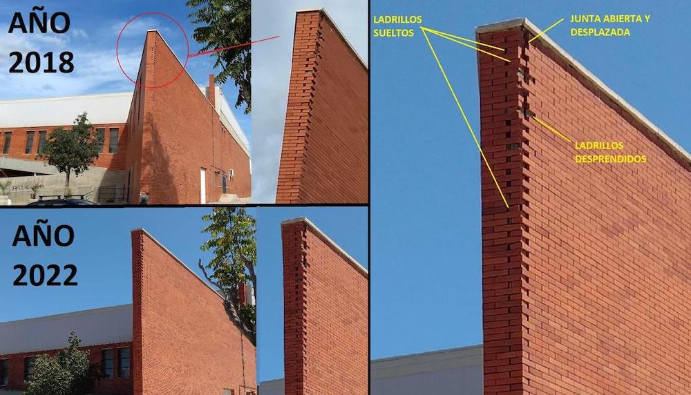 A lo largo del último año, desde el Partido Popular de La Unión venimos denunciando regularmente el pésimo estado de la mayor parte de las instalaciones deportivas municipales, muchas de las cuales no reúnen las condiciones mínimas para que nuestros vecinos puedan practicar sus deportes favoritos en una situación de normalidad. Una de ellas ha sido el pabellón polideportivo ‘Ramón Solano’, sito en la calle Carrera de Irún, del que recientemente denunciábamos las múltiples goteras existentes en su techumbre y del que ahora lo hacemos a causa de su fachada exterior, de cuyo vértice se están desprendiendo ladrillos que caen a la vía pública pudiendo ocasionar una grave desgracia personal si cayeran sobre algún viandante.
