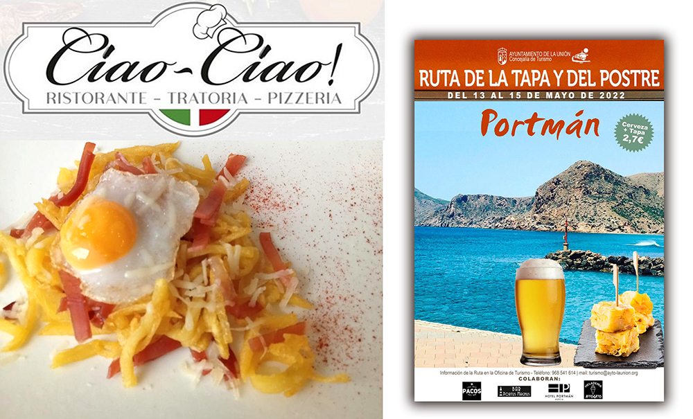 Disfruta de la Noche de los Museos de La Unión, de las Cruces de Mayo de el Garbanzal y de la Ruta de la Tapa de Portmán, haz noche en Hotel Portmán y come en el restaurante ‘Ciao Ciao’, con el mejor sabor de la cocina italiana. Es un gran plan. Además, fíjate qué tapa te hemos preparado para la senda gastronómica de tapas.