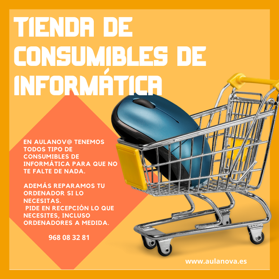 Sabemos que son días difíciles para todos, por eso en Aulanova os queremos recordad que, además de nuestra faceta de formación de alumnos, ??????? ?????? ?? ??????????? ???? ???????́???? (cartuchos, ratones ,cables, USB, tarjetas de memoria, auriculares, accesorios...) y que además reparamos tu ordenador si se avería. También te ayudamos a elegir un ordenador a tu medida y muchas cosas más. Acércate a nuestro establecimiento del número 22 de la calle Sor Virtudes de La Unión, mira nuestros productos y pregunta sin problemas cualquier duda.