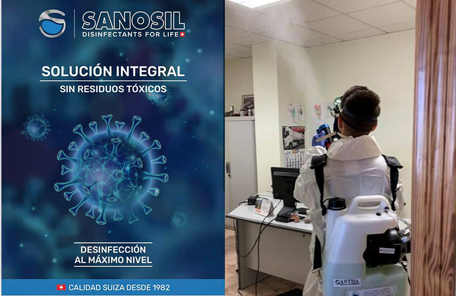 La empresa unionense presenta el nuevo modelo de desinfección con mochila por micro pulverización de ultra bajo volumen, junto al producto Sanosil S010 con peróxido de hidrógeno e iones de plata capaz de eliminar el virus en tan solo 7 segundos.