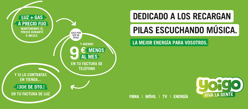 Nueva promoción con la mejor energía. Luz + gas a precio fijo durante medio año con un descuento de 9 euros al mes en la factura del teléfono. Además, si lo contratas en la tienda de la calle Mayor de La Unión, otro descuento en la factura de luz de... ¡30 euros!