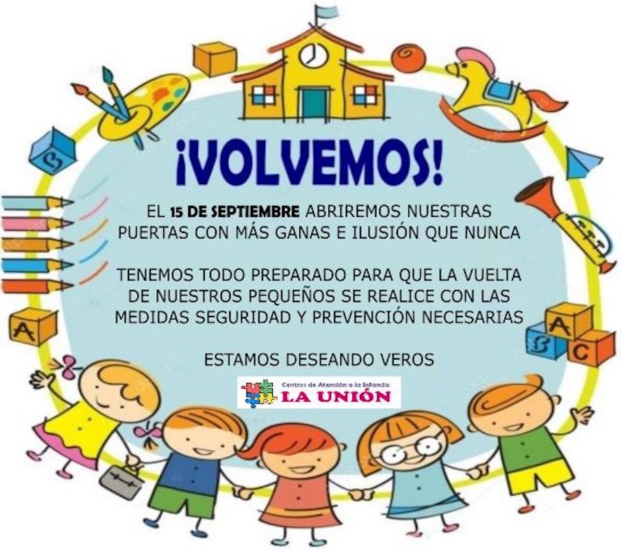 Este martes, 15 de septiembre, vuelven a abrirse las puertas de las instalaciones en la calle Rojo El Apalgatero, en El Garbanzal, del centro de atención a la infancia. Tenemos todo preparado y hemos cuidado todas las medidas de seguridad e higiene, pero especialmente estamos con muchas ganas e ilusión de volver a estar con vosotros. Abrimos desde las 7.30 horas dela mañana. ¡Os esperamos!