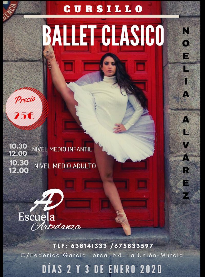 La academia de baile y danza de La Unión organiza para los días 2 y 3 de enero de 2020 un cursillo que será impartido por la bailarina profesional Noelia Álvarez.