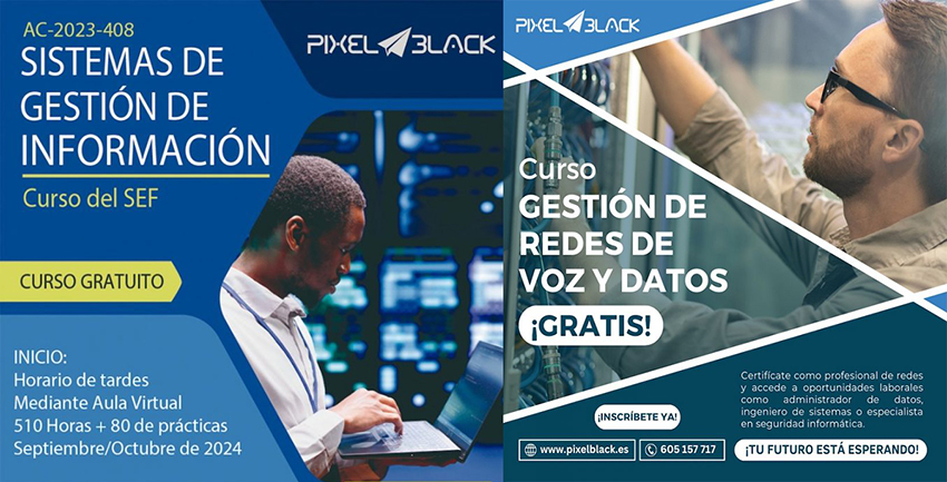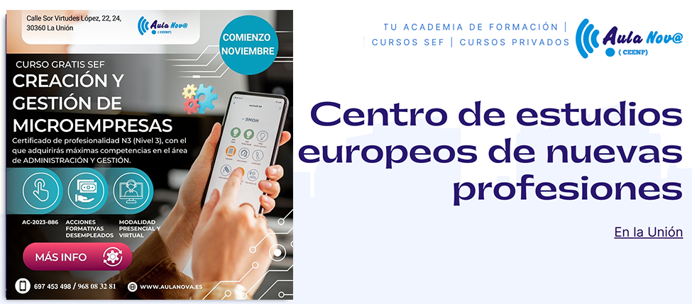 El centro de formación sigue lanzando cursos del SEF (Servicio de Empleo y Formación de la Región de Murcia) dirigidos a desempleados, autónomos, trabajadores y estudiantes para ayudarles a encauzar o mejorar su trayectoria laboral. Ya te puedes apuntar a 'Sistemas de gestión de información' y 'Gestión de redes de voz y datos'.