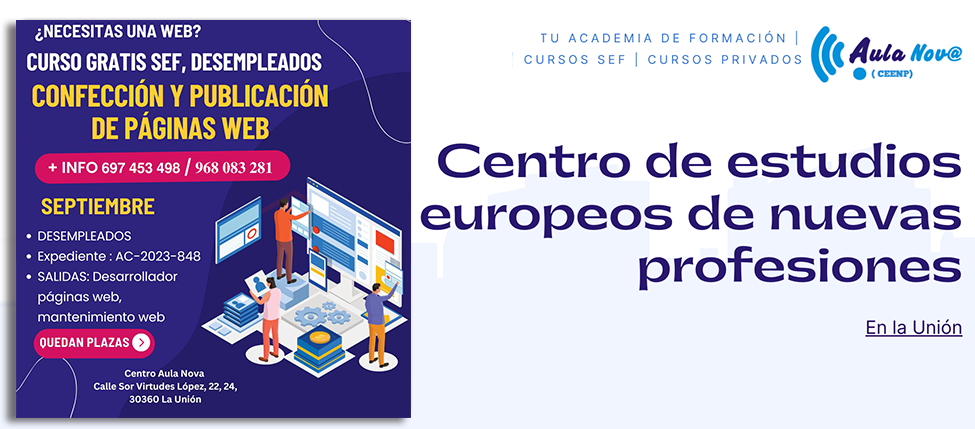 El centro de formación sigue lanzando cursos del SEF (Servicio de Empleo y Formación de la Región de Murcia) dirigidos a desempleados, autónomos, trabajadores y estudiantes para ayudarles a encauzar o mejorar su trayectoria laboral. Ya te puedes apuntar a 'Sistemas de gestión de información' y 'Gestión de redes de voz y datos'.
