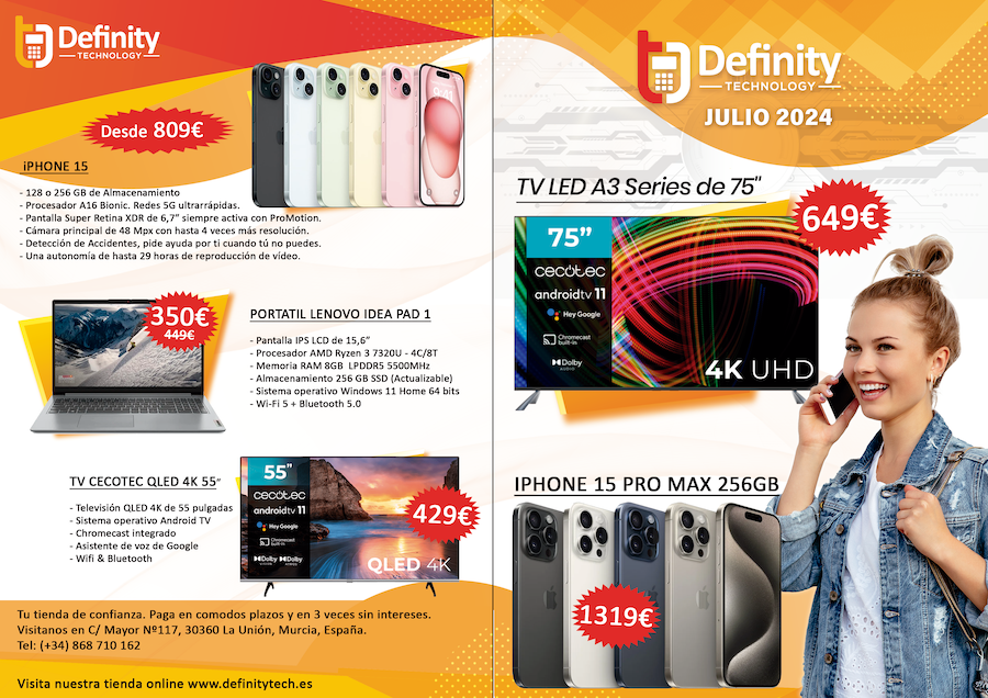 Aprovecha este mes los increíbles precios que Definity Tech ha colocado a móviles, portátiles, televisores, relojes, ventiladores, patinetes, cascos, auriculares, etc.