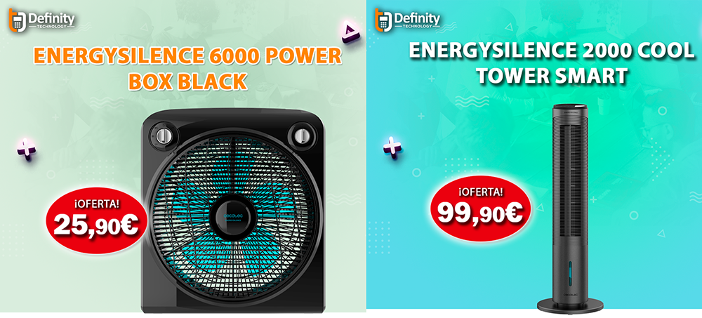 La promoción de esta semana se centra en dos opciones de ventiladores silenciosos y potentes. Uno por sólo 25,90 euros y otro, en formato torre, por 99,90 euros. Los puedes conseguir acudiendo a la tienda física de la calle Mayor de La Unión o entrando en el portal www.definitytech.es - También los puedes financiar en 12 meses.
