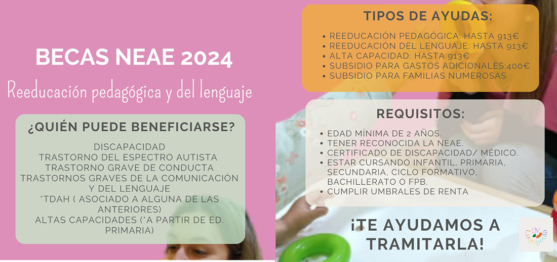 Ayer comenzó el plazo para solicitar las becas de reeducación pedagógica y de lenguaje para los alumnos con necesidades de apoyo educativo 2024. En el centro académico ubicado en El Algar te ayudamos a tramitarla.