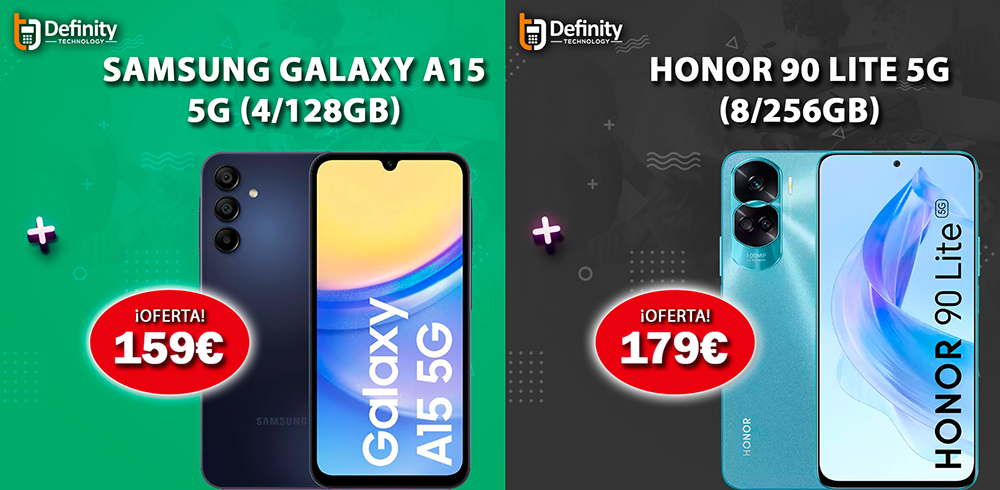 En esta ocasión, se trata de un terminal Samsung Galaxy A15 5G y un Honor 90 Lite 5G por precios inmejorables. También puedes financiar los pagos. Esta promoción la tienes hasta el domingo a través de la tienda física de la calle Mayor de La Unión y por la web www.definitytech.es- Además, te recordamos que podemos personalizarte tus móviles con la foto que quieras.