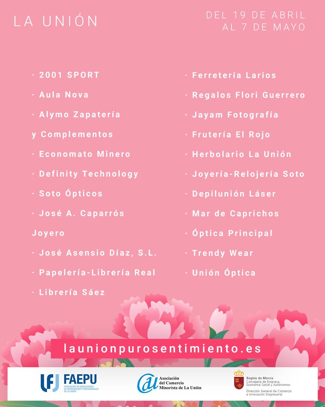 La Federación de Asociaciones de Empresarios y Profesionales de La Unión (FAEPU) celebra a las cuatro horas de esta tarde el sorteo del concurso cuyo vencedor recibirá un cheque de 1.200 euros para gastar en los comercios adheridos a la campaña, que se ha desarrollado del 19 de abril al 7 de mayo con el objetivo de dinamizar el comercio local.