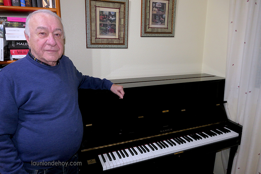 El conocido y polifacético vecino de La Unión, quien en su juventud cursó estudios de piano, ha decidido estrenarse con público en una actuación que tendrá lugar el uno de enero. "Era una ilusión que siempre he tenido, pero que nunca me atreví a llevar a cabo, pero el empuje de mi familia ha sido fundamental", afirma. En la foto se le observa con el piano que tiene en su domicilio.