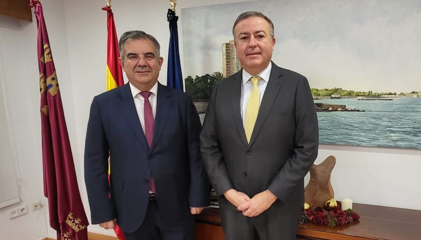 El consejero de Medio Ambiente, Universidades, Investigación y Mar Menor de la Comunidad Autónoma, durante la reunió mantenida con Carlos Bernabé, presidente de la Federación de Asociaciones de Empresarios y Profesionales de La Unión, ha confirmado su presencia en el Mercado Antiguo el 17 de abril próximo para la inauguración de la vigésimo séptima edición.