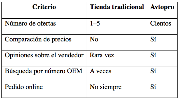 Comparación visual: Avtopro vs tiendas tradicionales