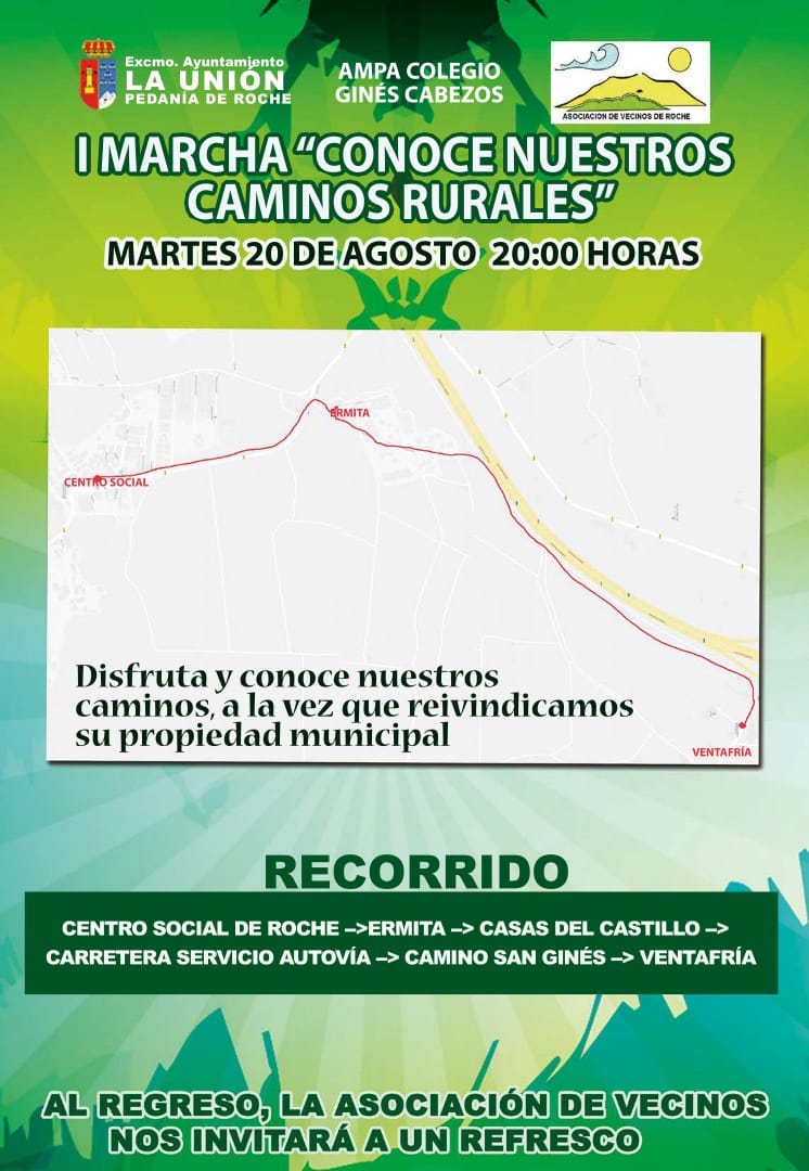 Es el nombre de la marcha que se estrenará este martes, a las 20 horas, con salida desde el centro social de Roche bajo la organización del Ayuntamiento, AMPA del colegio Ginés Cabezos y de la Asociación de Vecinos, que invitará al final a un refresco a los participantes.