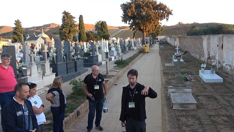 El historiador Antonio Florit y el arqueólogo Santiago García (Gaia), de la empresa 'Rutas misteriosas', fueron quienes llevaron a cabo la ruta didáctica de esta iniciativa organizada por el ayuntamiento de La Unión en un cementerio que ha cumplido ciento cuarenta años de historia. Entre los asistentes se encontraban el alcalde y la primera teniente de alcalde de La Unión, respectivamente, Pedro López y Elena Lozano.
