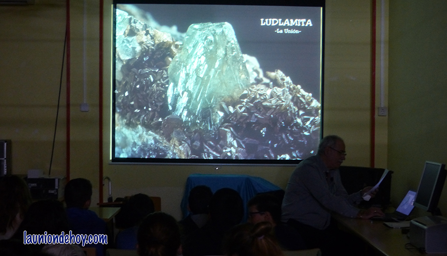 Pedro Pérez Nieto ha celebrado, debido a la lluvia, la conferencia en el colegio Herrerías bajo el título ‘La Unión a cielo abierto’. Ha recordado a los alumnos que esta tierra tiene pasado minero, pero que esa faceta es realmente desconocida para las nuevas generaciones, por lo que ha llevado a cabo una charla amena, apoyada en imágenes, sobre los minerales y la minería, recordando que él estuvo trabajando en este gremio durante unos años y que también participó en el aprovisionamiento de minerales para el Museo Minero.