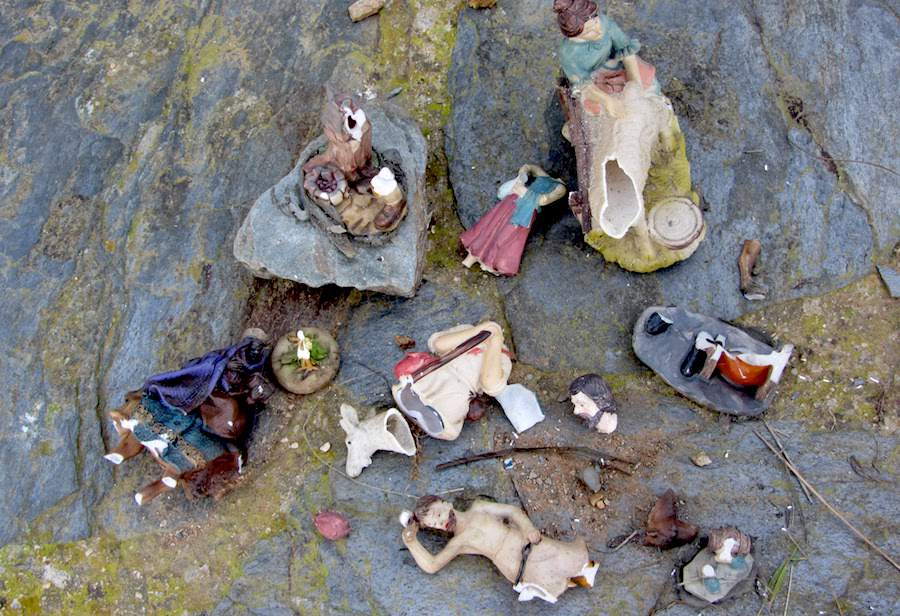 Un grupo de integrantes de Vedruna Camina ha organizado una ruta senderista por la zona que también ha servido para retirar las figuras del Nacimiento que cada Navidad montan en el Camino del 33, pero se han encontrado con la desagradable sorpresa de que algunas figuras estaban rotas como consecuencias del impacto de piedras lanzadas.
