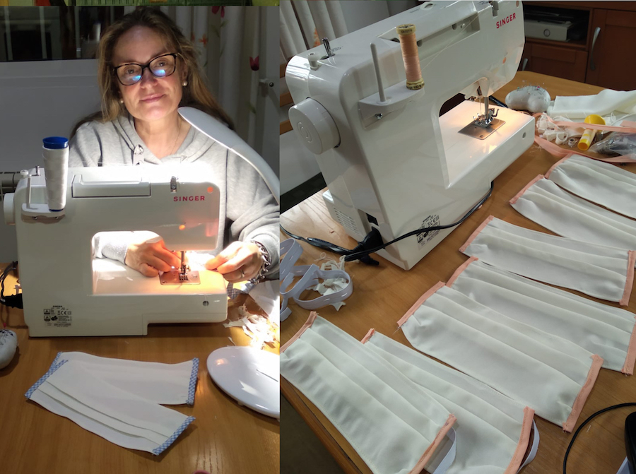 Diana a las ocho de la mañana y con una buena organización y planificación marcada. Unos cortan, otros cosen y también embalan con mensajes cargados de positividad: 'Soy otra guerrera + de este hospital', 'La seguridad está en tus manos', 'Juntos, podemos'…