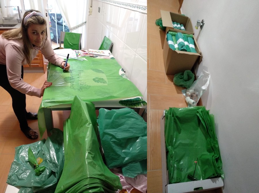 Mari Lola Gambín ha 'contagiado' de solidaridad a familiares y amigos consiguiendo formar un animado equipo en La Unión con el que también se combate la escasez de material que sufrimos en esta larga batalla contra el coronavirus, en esta ocasión, dirigido al personal de limpieza del hospital de Santa Lucía.