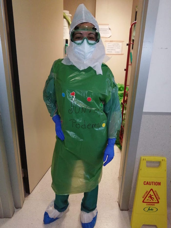 Esto ha hecho que el personal de 'Actúa', al que a primera hora de cada mañana, se le transfiere el material (mascarillas y batas de un solo uso), se sienta emocionado y haya mostrado su agradecimiento, así como la sonrisa que los enfermos esbozan al ver los mensajes que en las batas se rotulan; es el mejor gesto para aliviar y asegurar a quienes también deben estar seguros para que la lucha siga en activo.