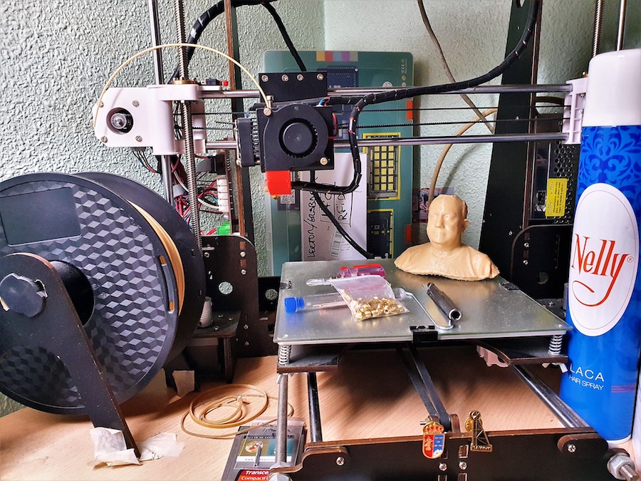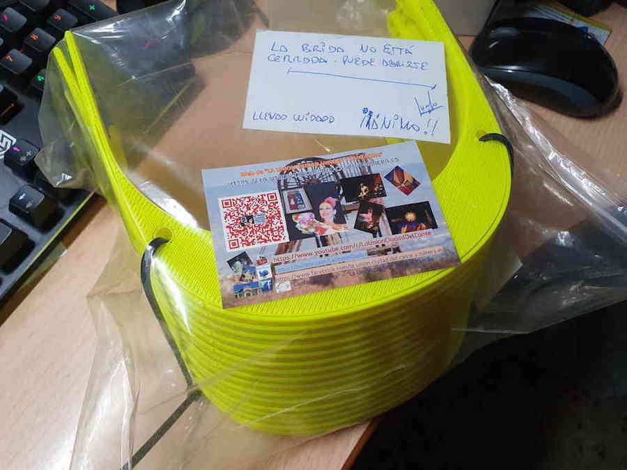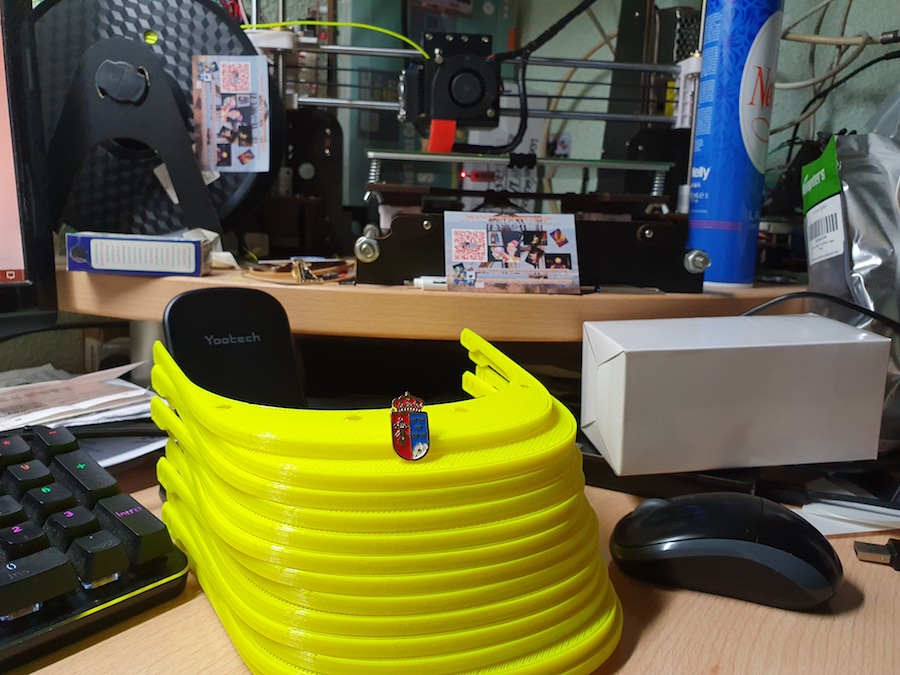 Dieciséis ha fabricado hoy en nueve horas y media, pues alrededor de cuarenta minutos (bastante menos que la mayoría de impresoras) es lo que se tarda por unidad. "Seguiré mientras no reviente la impresora", expresa este ejemplo de voluntad de servicio a los demás (de forma desinteresada) que es Juanjo Carrillo.