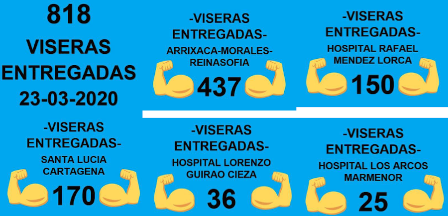 Juanjo Carrillo se embarcó con su artesanal impresora 3D y con sus propios medios ha comenzado la producción. El trabajo está coordinado y a cada altruista voluntario se le comunica qué debe crear. "Está todo muy organizado, con protocolos, producción y trazabilidad", apunta Juanjo, informando que como punto de recogida está la empresa Fluid3D (cuya sede está en el Centro Europeo de Empresas e Innovación de Cartagena), tratándose de un proyecto a nivel nacional e, incluso, internacional. Luego, los producidos será recogido por la unidad de aprovisionamiento integral (UAI) del Servicio Murciano de Salud, que son los encargados de recoger las viseras, desinfectarlas, montarlas (ellos ponen el acetato y la goma) y distribuirlas a los hospitales, donde son esterilizadas y se procede a su reparto interno.
