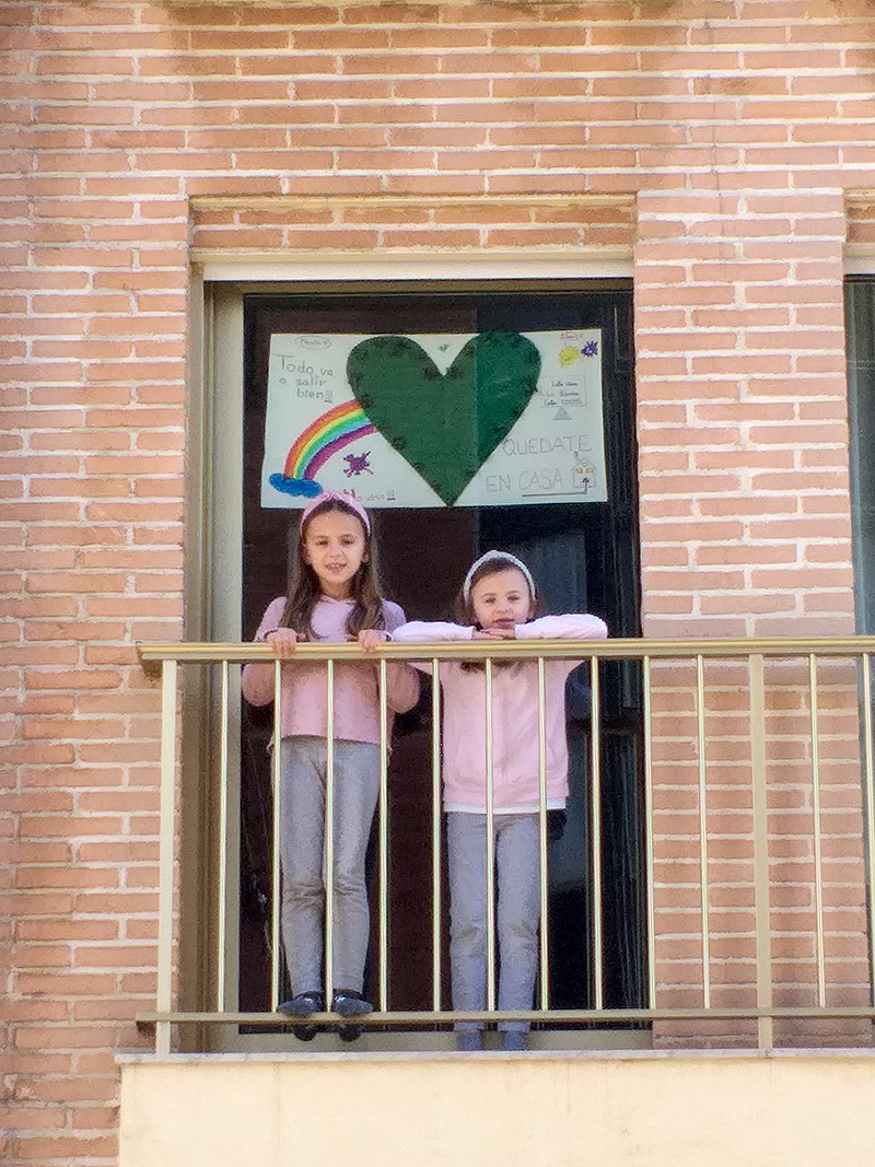 Las dos jóvenes vecinas de La Unión ya tienen en la ventana de su hogar este símbolo de esperanza ante el problema que sufrimos con el coronavirus.