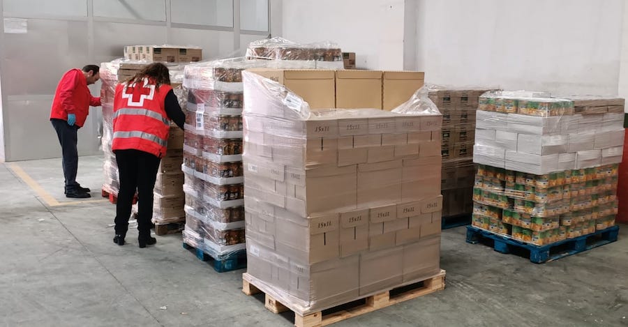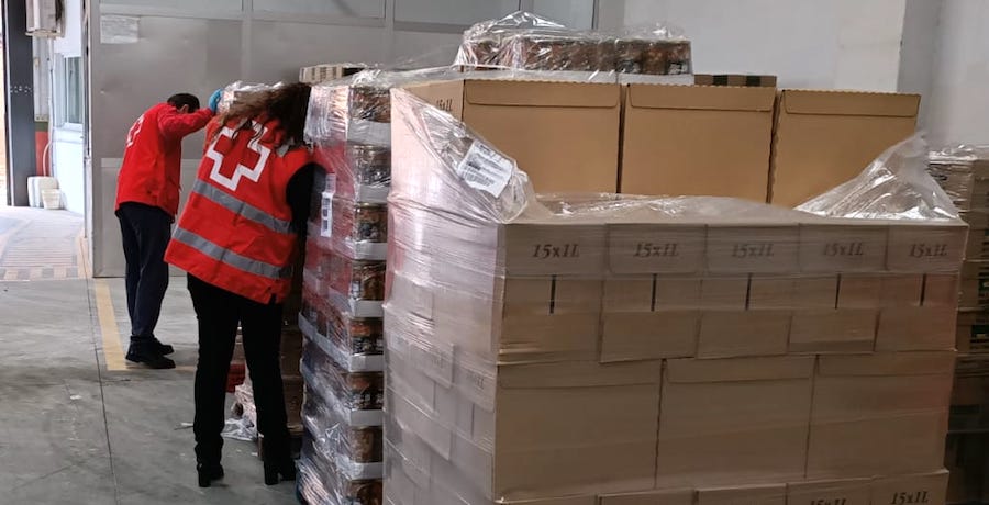 La asamblea local de La Unión ha recibido hoy, en uno de sus locales, más de nueve mil kilos de alimentos que tendrán como destino a las familias necesitadas.