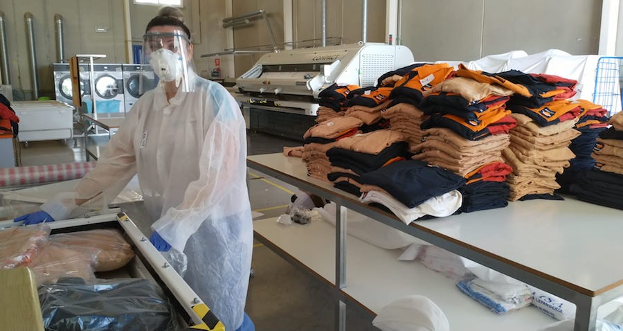La empresa unionense especializada en limpieza nos protege y se protege. Por un lado, de forma altruista y al igual que hizo con los coches patrullas de la Policía Local, ha desinfectado ahora los vehículos de Protección Civil. Por otro, como se observa en la imagen, su personal lleva a cabo su trabajo con fuertes medidas de seguridad individual, como pantallas de protección facial que han sido elaboradas con una impresora 3D en la ciudad.