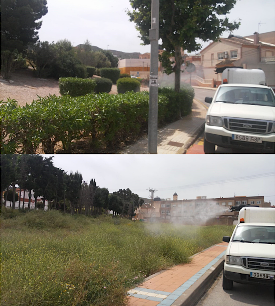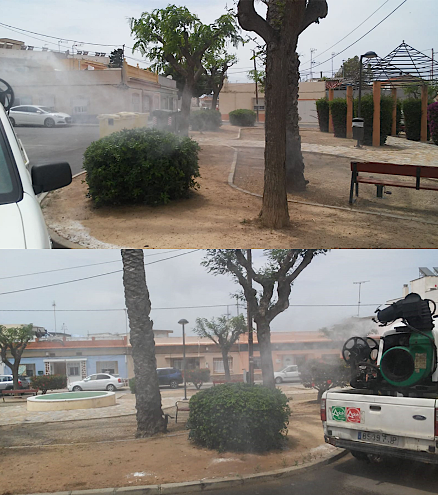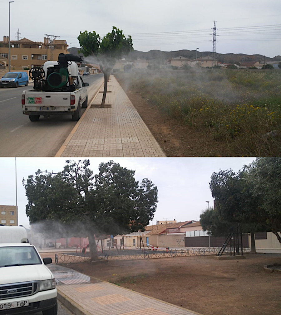 La Unión Servicios Municipales SA informa a los vecinos del municipio que se sigue llevando estos trabajos por numerosos puntos, pero matizando que se tardará un tiempo en lograr que desaparezca la plaga.