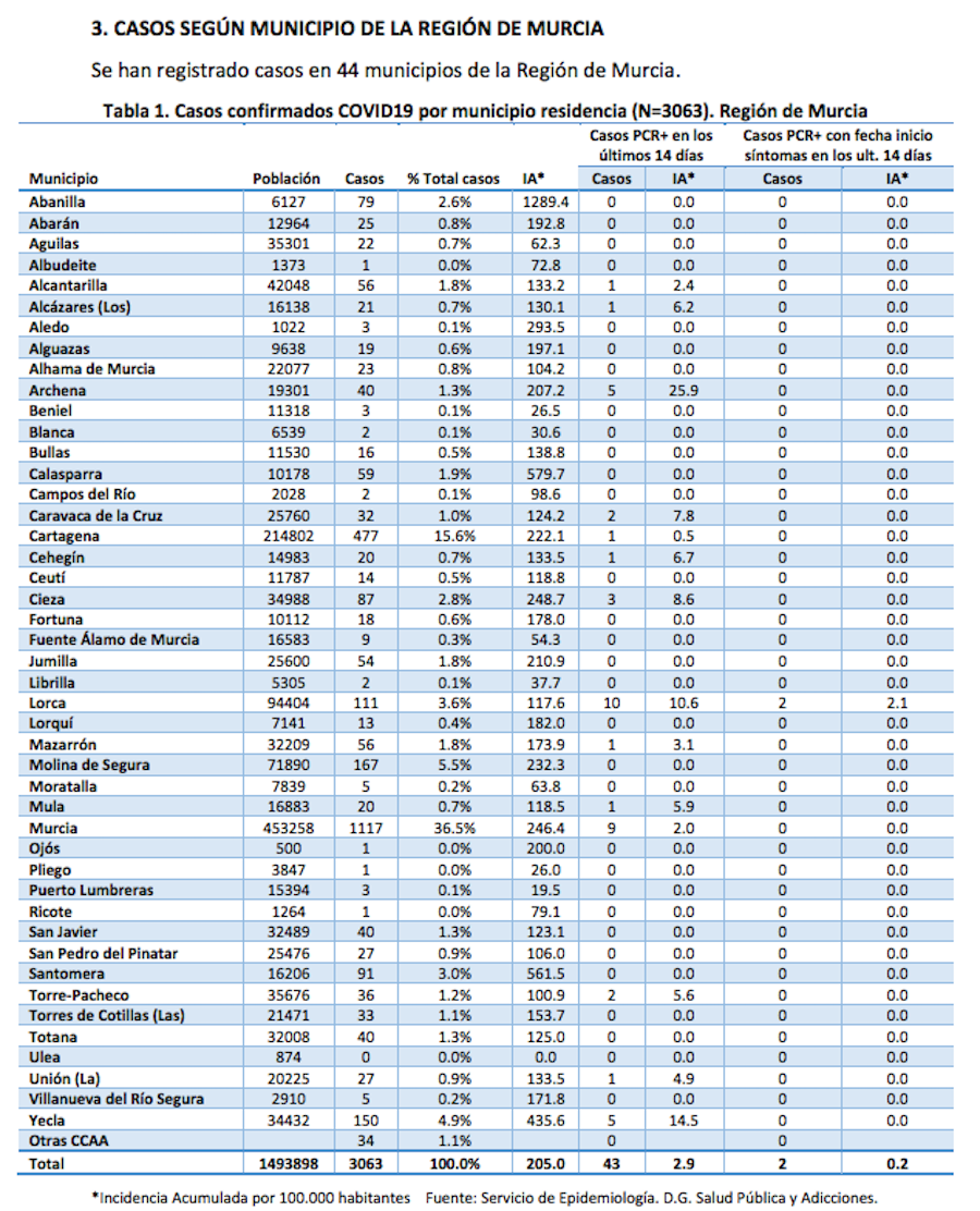 El informe detallado del Servicio de Epidemiología con fecha 3 de junio muestra que el número de casos detectados en La Unión durante la pandemia ha sido de 27, de los que uno corresponde a los últimos 14 días.