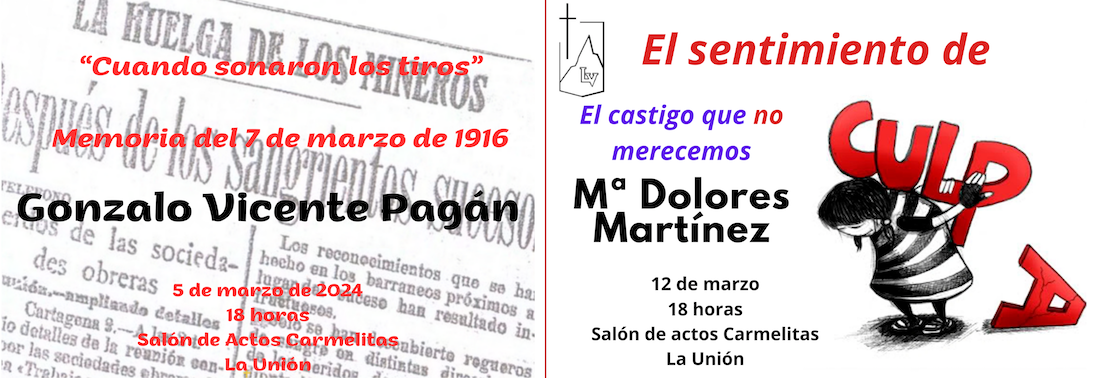 Es el título de la conferencia que hoy ofrece, a las 18 horas, el archivero municipal, Gonzalo Vicente Pagán, en el salón de actos del colegio de Nuestra Señora del Carmen (Carmelitas), en un acto organizado por el grupo de Laicas Vedruna. La siguiente charla la ofrecerá María Dolores Martínez Pujante el 12 de marzo. Ambas son de acceso gratuito hasta completar aforo. El archivero municipal hablará hoy de los trágicos sucesos del 7 de marzo de 1916 y la psicóloga lo hará sobre el sentimiento de culpabilidad.