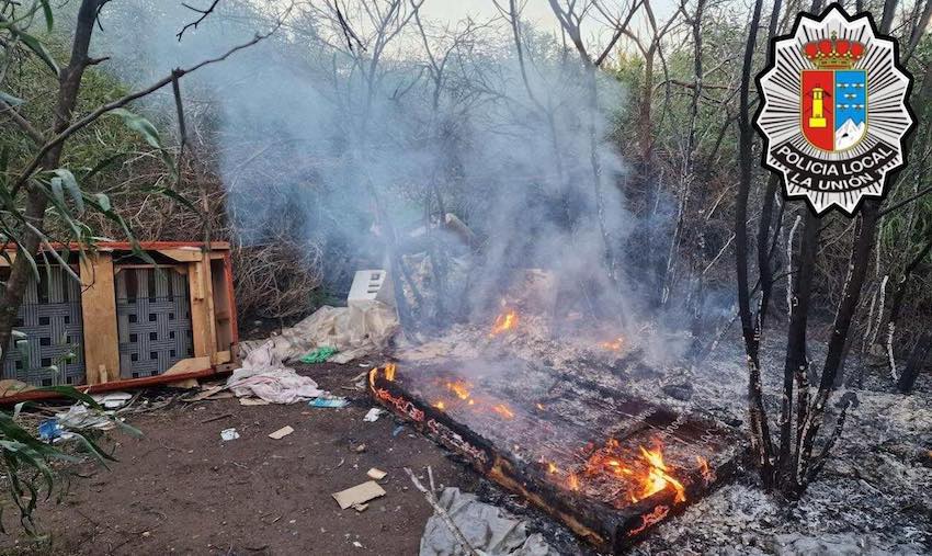 Policía Local de La Unión informa de un conato de incendio que tuvo lugar en la zona de rambla de la calle de la Virgen del Carmen al ser quemados varios enseres, siendo las llamas sofocadas por agentes policiales y personal de Protección Civil.