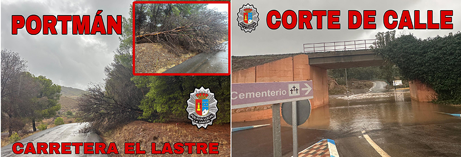 Se ha producido en la carretera de El Lastre, en Portmán, dentro de la lluviosa jornada de hoy durante el paso de la DANA 'Alice'. La Policía Local de La Unión también informa que se reabre el paso por debajo del puente en el camino hacia el Lazareto, donde el agua se estancó al taponar la acumulación de horas la arqueta. También reseñar que se han suspendido las actividades náuticas en todo el litoral de la Costa Cálida y los exámenes para el carné de conducir en Cartagena.
