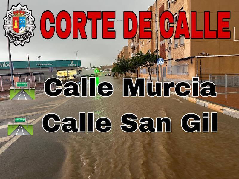 La Policía Local de La Unión informa de que no se puede transitar por las calles Murcia y Gil, en la entrada a la villa de El Garbanzal, debido a la acumulación de agua que está recibiendo en la bajada desde lo alto de la ciudad. Reseñar que hacía mucho tiempo que en esta zona no llovía como lo está haciendo desde las tres de la tarde de ayer. Indicar que desde el Centro Metereológico de Guadalupe se informa a este diario que las cifras de agua caída en los últimas 24 horas ha sido de 18,7 litros en la ciudad de Cartagena, de 14,6 en el de Tentegorra y de 76 en el de Cabo de Palos.