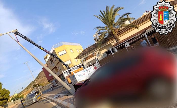 La Policía Local de La Unión informa sobre la colisión que tuvo un turismo contra una farola de la avenida del Mediterráneo. El conductor dio positivo en alcoholemia y tenía la ITV caducada. Por otro lado, los agentes han identificado a los dos autores de un corte de cables eléctricos.