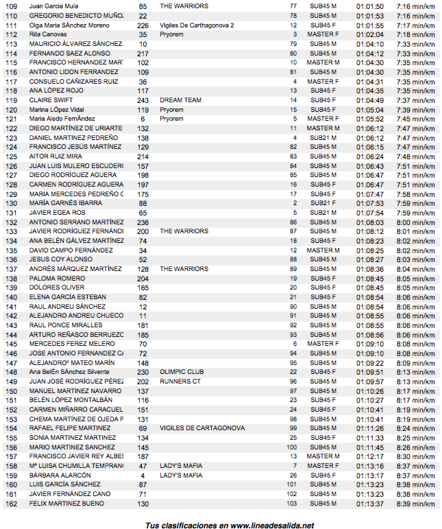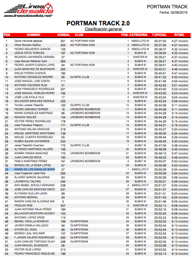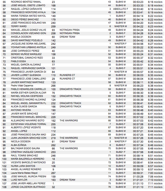 La prueba fue concluida por 254 deportistas, siendo María de los Ángeles B la ganadora femenina.