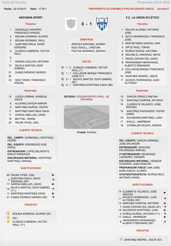 La Unión Atlético salda su visita a Archena con un mal partido, en el que sólo al principio del segundo tiempo tuvo buenos momentos. Tras siete jornadas, el conjunto blanquiazul sólo ha saboreado una victoria en Preferente.