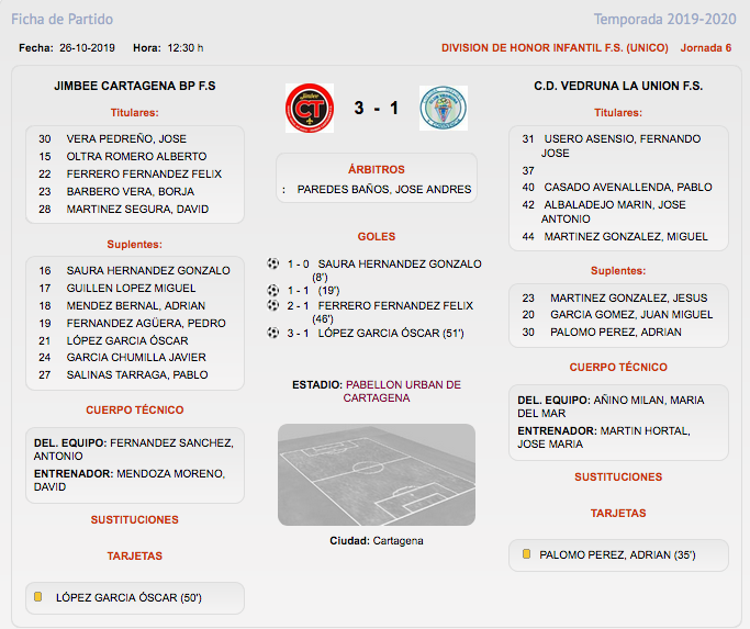 - División de Honor infantil: Jimbee Cartagena, 3 - CD Vedruna, 1