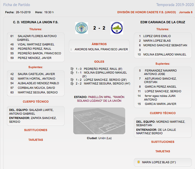 - División de Honor cadete: CD Vedruna, 2 - EDM Caravaca de la Cruz, 2