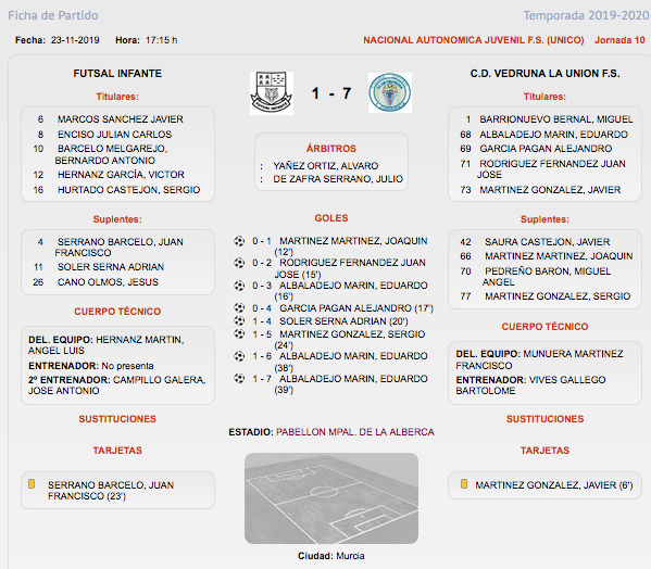 Nacional Autonómica juvenil. Futsal Infante, 1 - CD Vedruna, 7