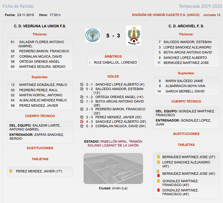 División de honor cadete. CD Vedruna, 5 - CD Archivel, 3