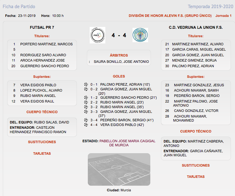 División de honor alevín. Futsal PRT de Murcia, 4 - CD Vedruna, 4