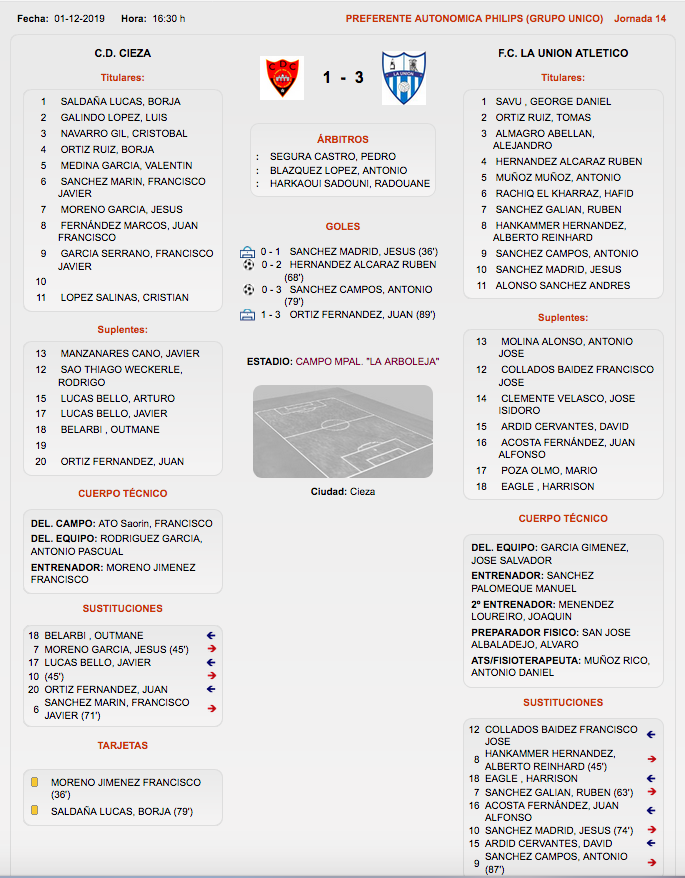 Partido de Preferente Autonómica disputado en el campo de La Arboleja de Cieza, en el que los jugadores que entrena Palomeque siguen demostrando que van a más.