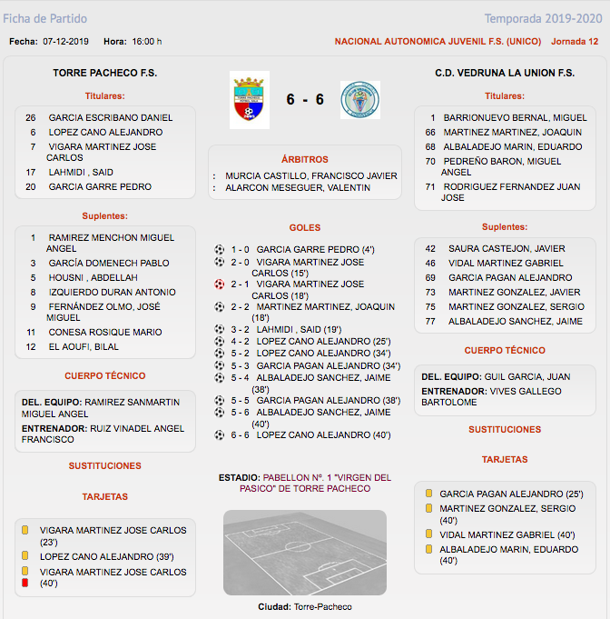 Espectacular empate entre Torre Pacheco y Vedruna (6-6)