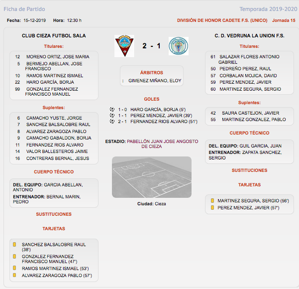 División de honor cadete. Cieza FS, 2 - CD Vedruna, 1